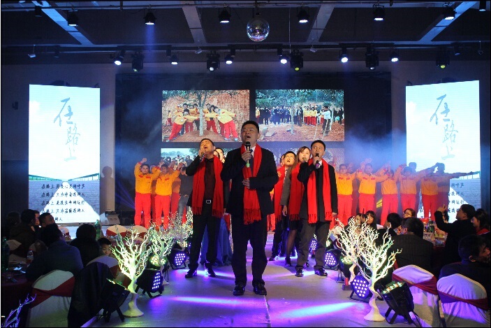 一場(chǎng)氣勢(shì)磅礴的面具舞,帶大家進(jìn)入了演出環(huán)節(jié)。所有節(jié)目都是和順員工精心準(zhǔn)備的,節(jié)目形式多樣,有小品、歌曲聯(lián)唱、舞蹈、樂器等等,大家個(gè)個(gè)身懷絕技,臺(tái)下掌聲也是連綿不絕。一首《在路上》帶大家進(jìn)入了此次嘉年華的高潮,伴隨著在路上的朗誦,董事長攜伴隨公司一路走來的老員工一同上臺(tái),共同唱響和順一路走來的艱辛與收獲。節(jié)目中還有公司給大家?guī)淼念~外福利,QQ搶紅包,真是驚喜不斷!